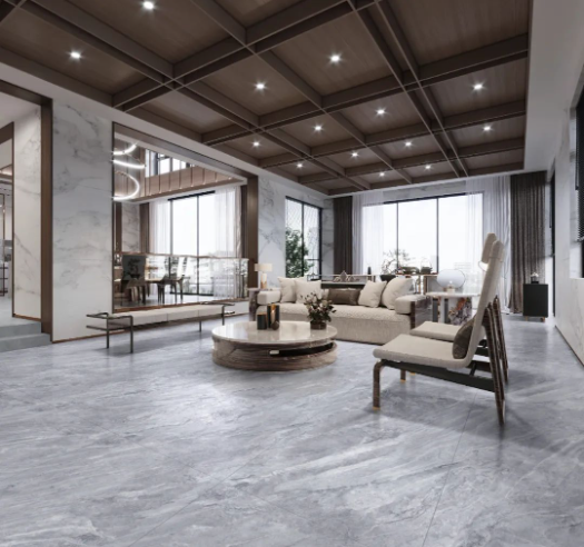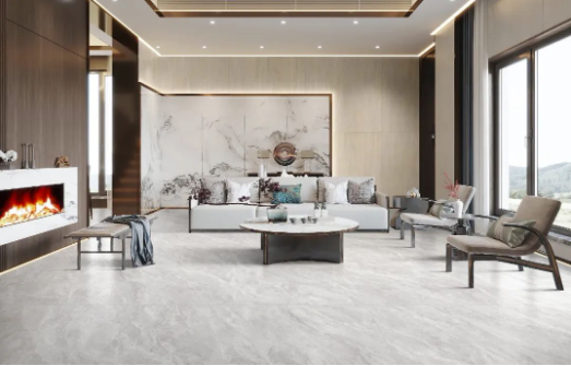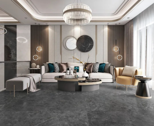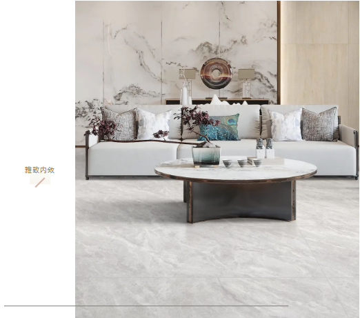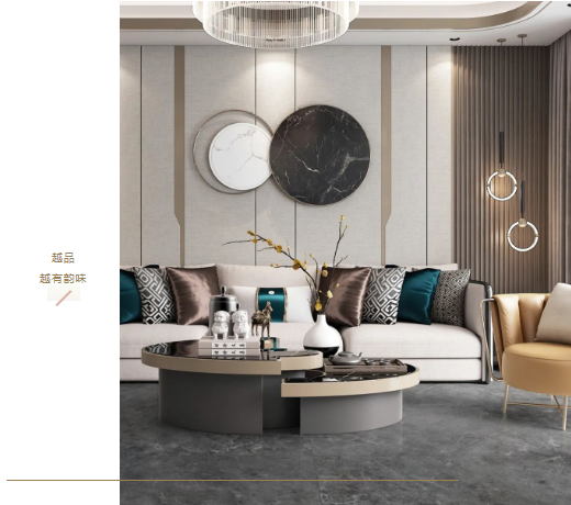 白色、黑色線紋交織分布在宋素|凡古磚-秋夜雨的表面,自然隨機的紋理平添一分大自然演變的痕跡。寬大舒適的沙發是整個空間的亮點,可以在沙發中盡享午后暖陽,流暢線條和色系,彷如經典電影越品越有韻味。