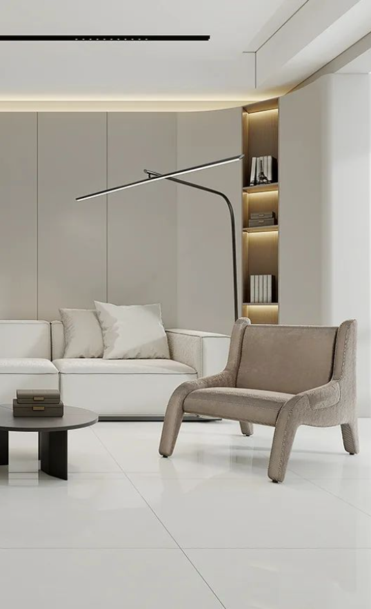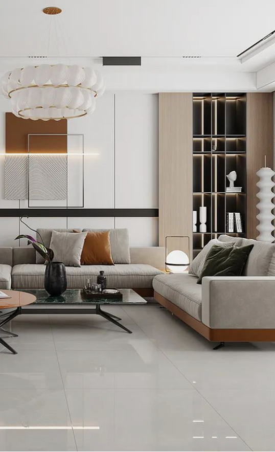 開放式客廳與組合型茶幾靈活于空間活動(dòng)之中,1500轉(zhuǎn)高耐磨度席夢(mèng)娜作為地面鋪貼,讓空間足夠開闊,笑聲得以承載的同時(shí),每一寸美學(xué)空間都經(jīng)得起時(shí)間磨練。