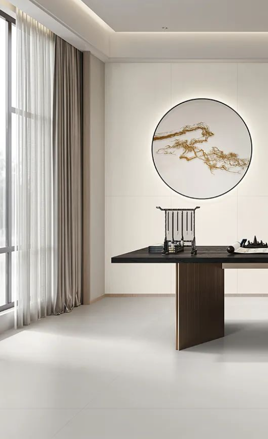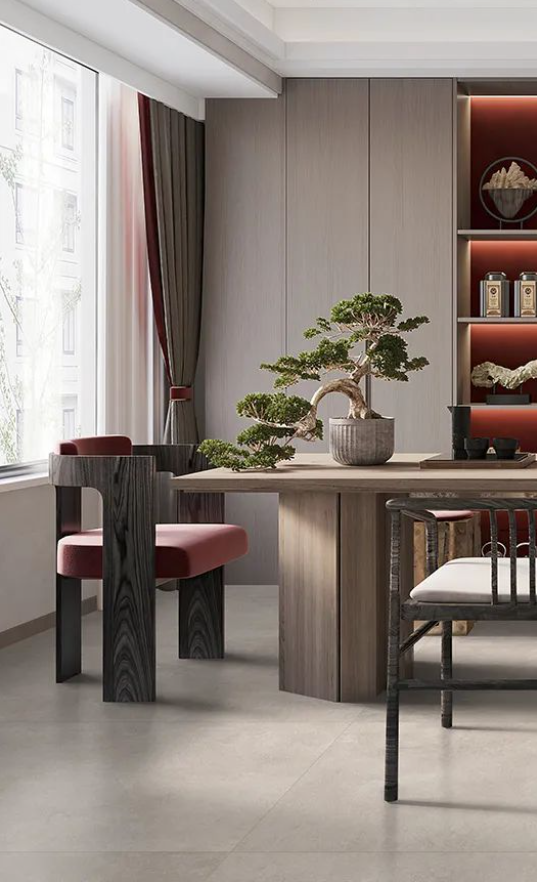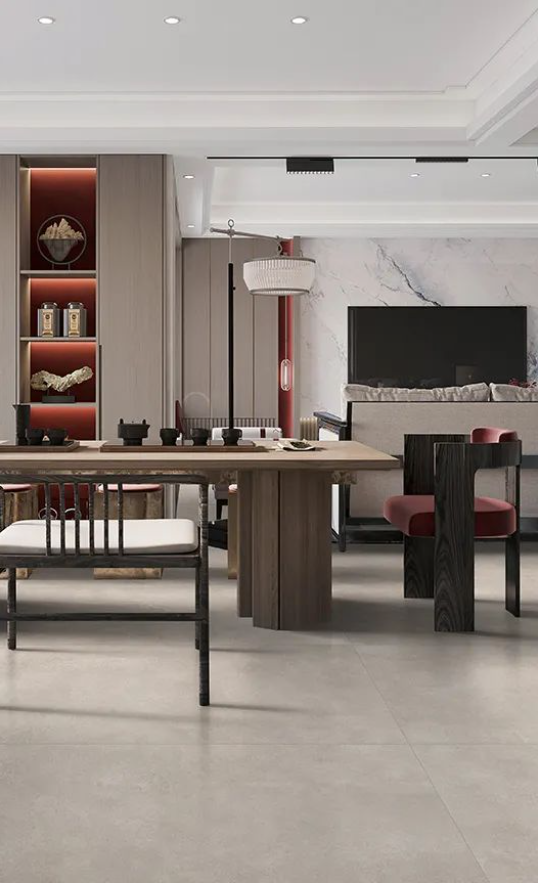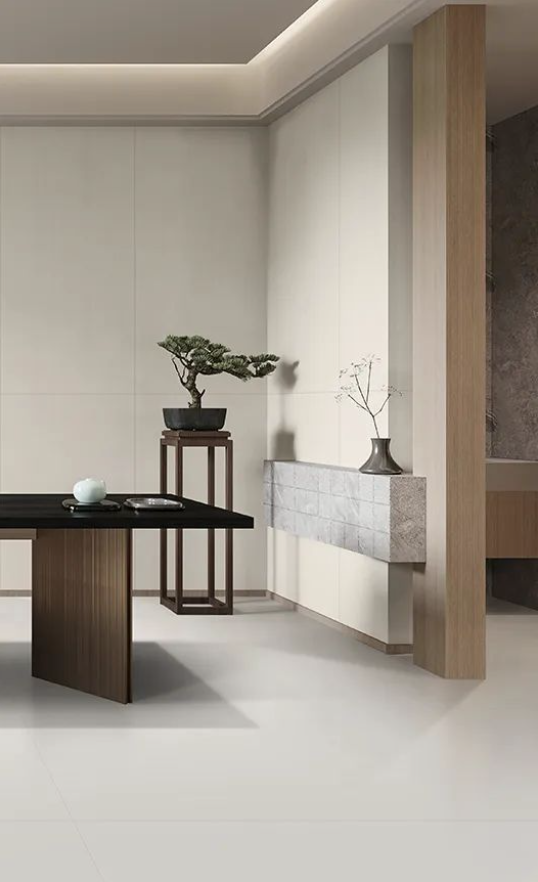 如同回歸大自然清新脫俗的木紋縱橫交錯,搭配宋素|凡古磚肌膚釉工藝自帶的8°柔光,在方寸之間展現(xiàn)簡潔、大方,暖灰色系結(jié)合恣意流暢的紋理,在光線渲染下,如朦朧月色裝飾空間,深邃而又浩渺,讓家中再現(xiàn)溫馨回憶。