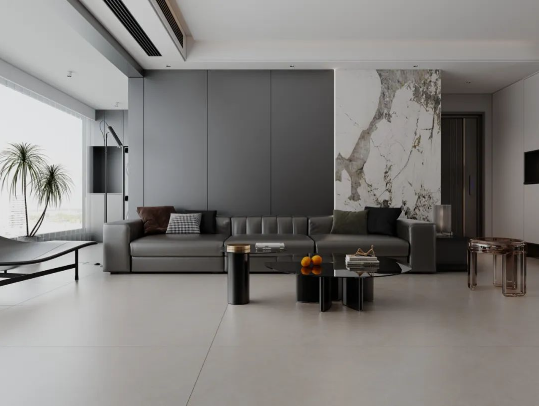 750X1500mm黃金規格,結合柔和暖灰延伸空間的視覺感同時,將客廳設計與美好自然組合,復刻原石經歷歲月后的真實肌理,為空間營造輕松治愈的舒適氛圍。